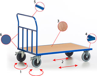| Chariot plate-forme à dossier tubulaire à barreaux Charge utile 400 et 500 kg |