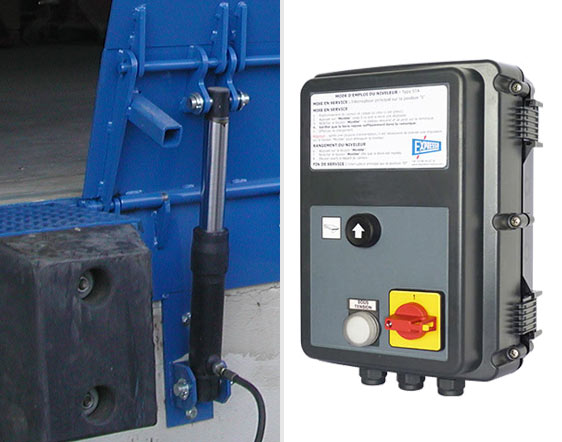 Ce mini-niveleur hydraulique se manœuvre très facilement par simple pression sur un bouton poussoir unique équipant le coffret de commande. Il est facile à installer dans une construction neuve ou en rénovation,fixé, soit par soudure sur un "fer" scellé en nez de quai, soit grâce à une casquette métallique.